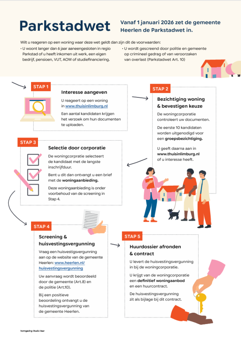 - Kijk op Thuis in Limburg om te reageren op beschikbare woningen in Heerlen. Je ziet dan ook direct of een woning in een Parkstadwet-gebied ligt en welke spelregels er gelden.